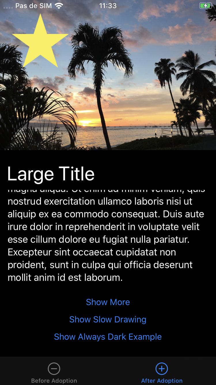 - Utiliser des couleurs dynamiques : color.white -> color.systemColor