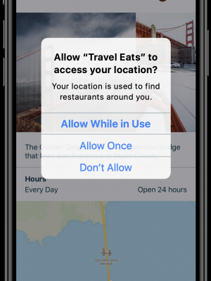 - “Allow once” : Comme un “While In Use” une seule fois, l’autorisation repasse ensuite dans un état “indéterminé”. Redemander la permission la prochaine fois.
